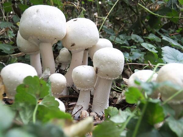 Marian Hulscher stuurde de foto's van de Gewone anijschampignon (Agaricus arvensis). Echt gewoon is hij niet in de zin dat je hem zomaar in het veld mag benoemen. Er zijn dubbelgangers en daarom is hij onderzocht en bevestigd door Inge Somhorst. Wel is hij gewoon, omdat het een tamelijk algemeen voorkomende soort is. Zelf neem ik er af en toe een maaltje van mee, want ze zijn zonder meer smakelijk. De opnamen maakte Marian al op 15 en 17 oktober 2018 in een km-hok waarvan zij zegt zich er uitstekend te vermaken (op paddenstoelengebied). Dat is km-hok 236-575, een gebied waarin de visvijver Sassenhein ligt en een klein deel van de begraafplaats Eshof. Zo'n omgeving (Wolddeelen) + het stedelijke deel van Haren zal toch gauw goed zijn voor pakweg 250 soorten schat ik (optimistisch) in.