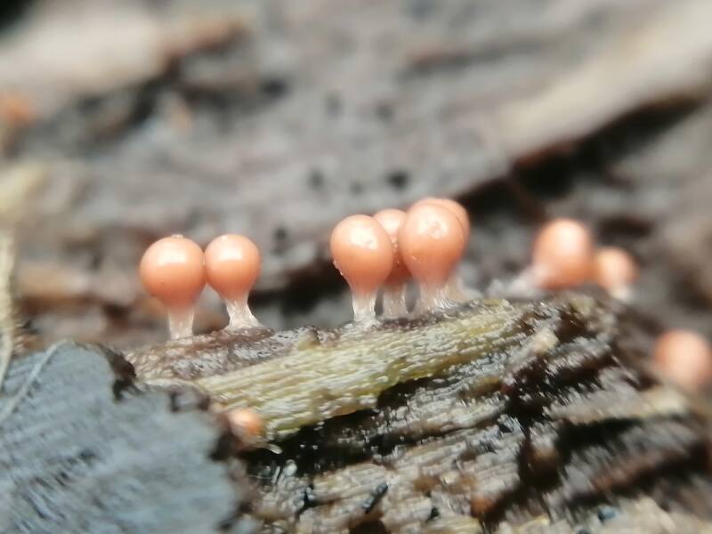 Ook Janny beleefde een puike dag. Maar liefst 8 myxomyceten werden door haar verzameld (een dagrecord) en daarvan waren er 4 niet eerder in de Lauwersmeerpolder gevonden. Dat betrof het zeldzame Stekelig netwatje (Arcyria oerstedii), het vrij zeldzame Robuust kalkschaaltje (Diderma umbilicatum) en het Grijs kalkkopje (Physarum cinereum). Alle drie zijn ze slechts een enkele keer in Noord-Nederland (Gr./Fr./Dr.) gevonden. Dat geldt niet voor het algemenere Fopdraadwatje (Trichia varia), maar die is hier wel nieuw. Desgevraagd meldde Janny later nog dat dit de tijd van het jaar is dat er veel myxomyceten kunnen worden gevonden. Wat dat betreft zouden er nog meer excursies mogen zijn, maar nu de koek op is moet ze maar in haar eigen omgeving (van Heerenveen) ernaar op zoek gaan.