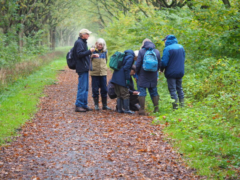 Om de Groningers in de groep tegemoet te komen zijn te elfder ure nog twee tussendoortjes in Groningen in het programma opgenomen. Dit naast de twee andere doordeweekse inventarisaties die ons naar het Buinerbosje voeren. De vaste vrijdagen, waarop de excursies traditiegetrouw sinds jaar en dag worden georganiseerd waren immers al volgeboekt. Daarbij waren ’slechts’ twee excursies in Groningen: in het Adriaan Tripbos en een week later naar het Lauwersmeer. Maar vandaag, op dinsdag 29/10, liepen we dus langs lange lanen in het Midwolderbos, het bos/park dat ten zuiden van de Ennemaborg in Midwolda ligt en ermee verbonden is.