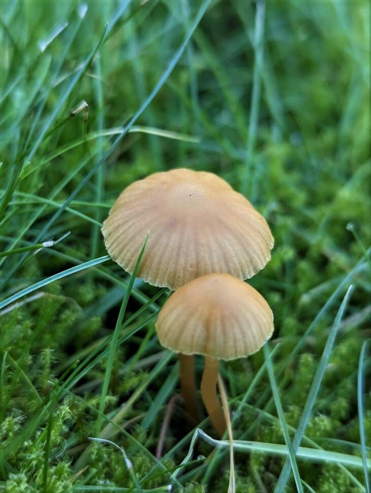 Het is niet de eerste keer dat we iets krijgen toegezonden met de vraag of we een naam kunnen noemen bij een foto. Vaak lukt dat bij redelijk te herkennen soorten wel, maar even vaak tasten we in het duister en moeten het antwoord schuldig blijven. Zo ook bij de paddenstoeltjes die in de tuin van Harry Harms in het gras groeiden. Harry vermoedde dat het een breeksteeltje (Conocybe) is, maar wij houden het op een mosklokje (Galerina spec.). Harry had het nog over een afwijkende kleur, maar voegde eraan toe dat hij niet bepaald bekendstaat als een kleurenexpert (hij is namelijk kleurenblind).