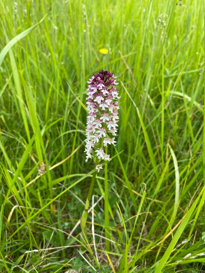 Op een van de wandelingen in de zuidelijke Périgord kwamen we langs zomaar een anoniem hooilandje, gewoon boerenland, met een soortenrijkdom waar zelfs de meeste natuurgraslanden in Nederland niet aan kunnen tippen. Vertrouwde verschijningen als Veldzuring, Echte koekoeksbloem, Grote ratelaar, Kroonkruid, Blauwe knoop en Duifkruid stonden er, naast Gulden sleutelbloem, Gewone vleugeltjesbloem en nog veel meer. Hier bloeide massaal de Gevlekte orchis, maar het hoogtepunt vormden de paar bloeiende exemplaren van de Aangebrande orchis. Kwam ooit in Nederland voor, maar is daar uitgestorven.